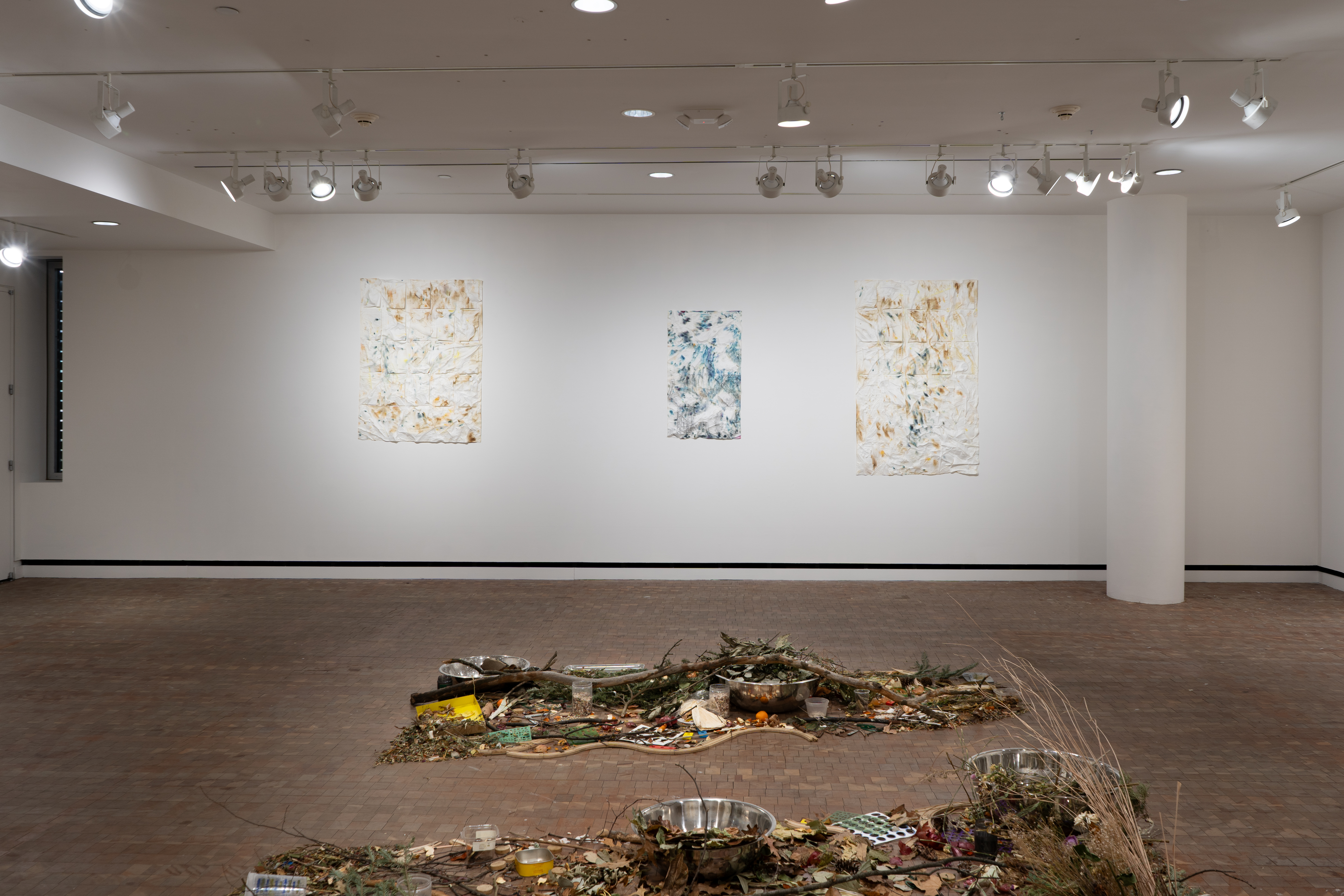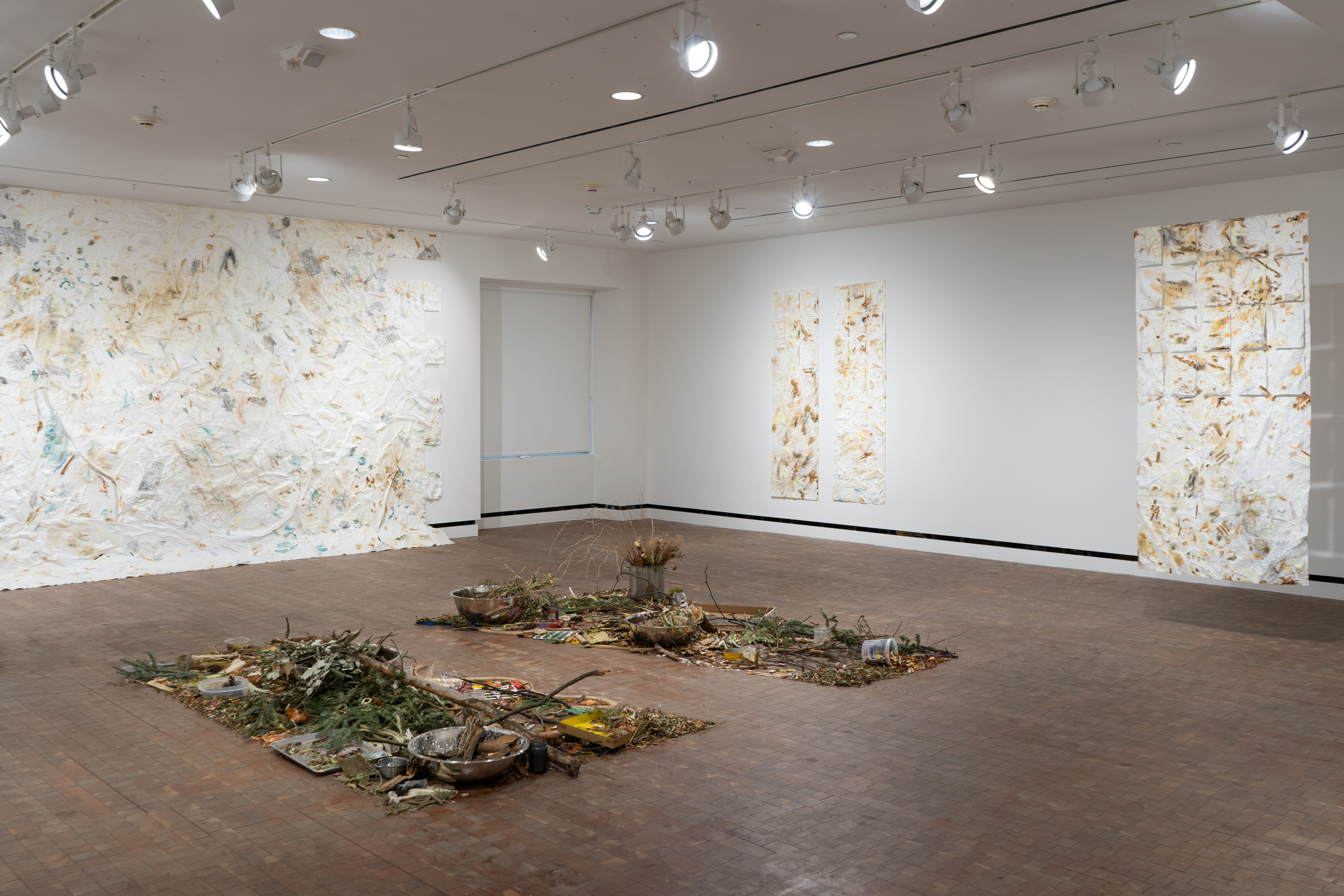On February 27, 2024, in a process of creating and sharing time and attention, Salazar will break apart and distribute all of “Leaves (One 365 (November, December))” to the exhibitions’ final viewers and visitors. This action echoes her Climate Museum-commissioned work “Low Relief for High Water,” which was a water-soluble cast of the windows of her childhood home, broken apart and shared on October 10, 2021, in Washington Square Park, NYC.